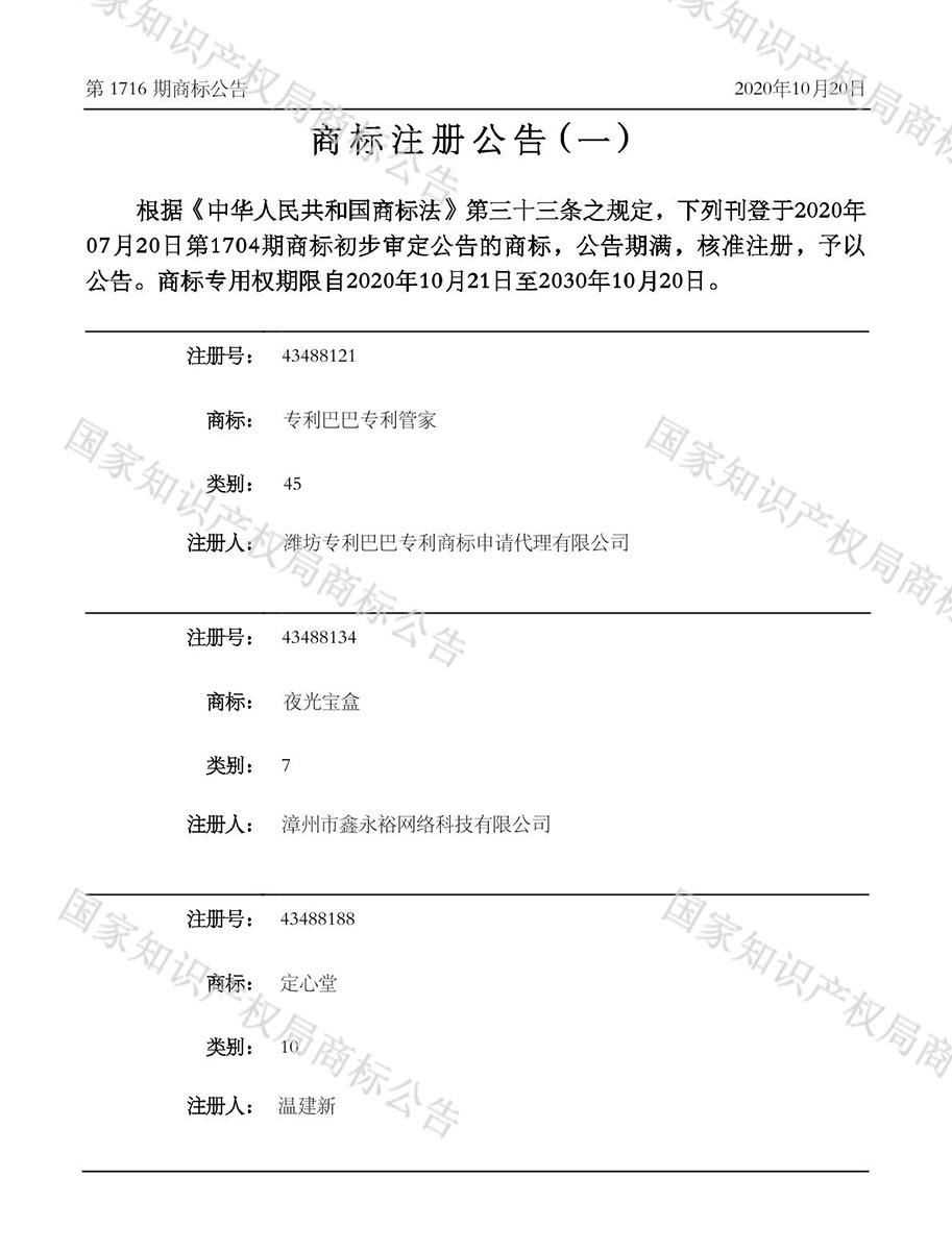 2020年10月21日,专利巴巴专利管家商标获得注册公告。